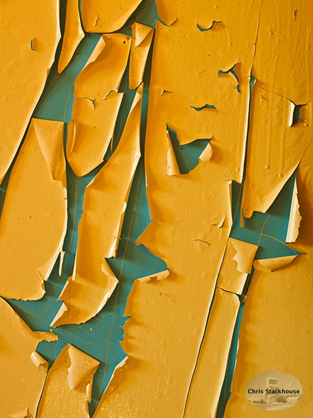 This image shows layers of paint peeling on a wall, one of many painted surfaces I found and photographed in an old town house relocated onto a friends farm near Eatonia, SW Saskatchewan.