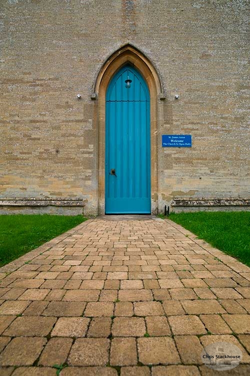 Photo of blue door at St James Church, Aston, Oxfordshire, UK. This is the main entrance to the church and is one of the slimmest style I have found so far.